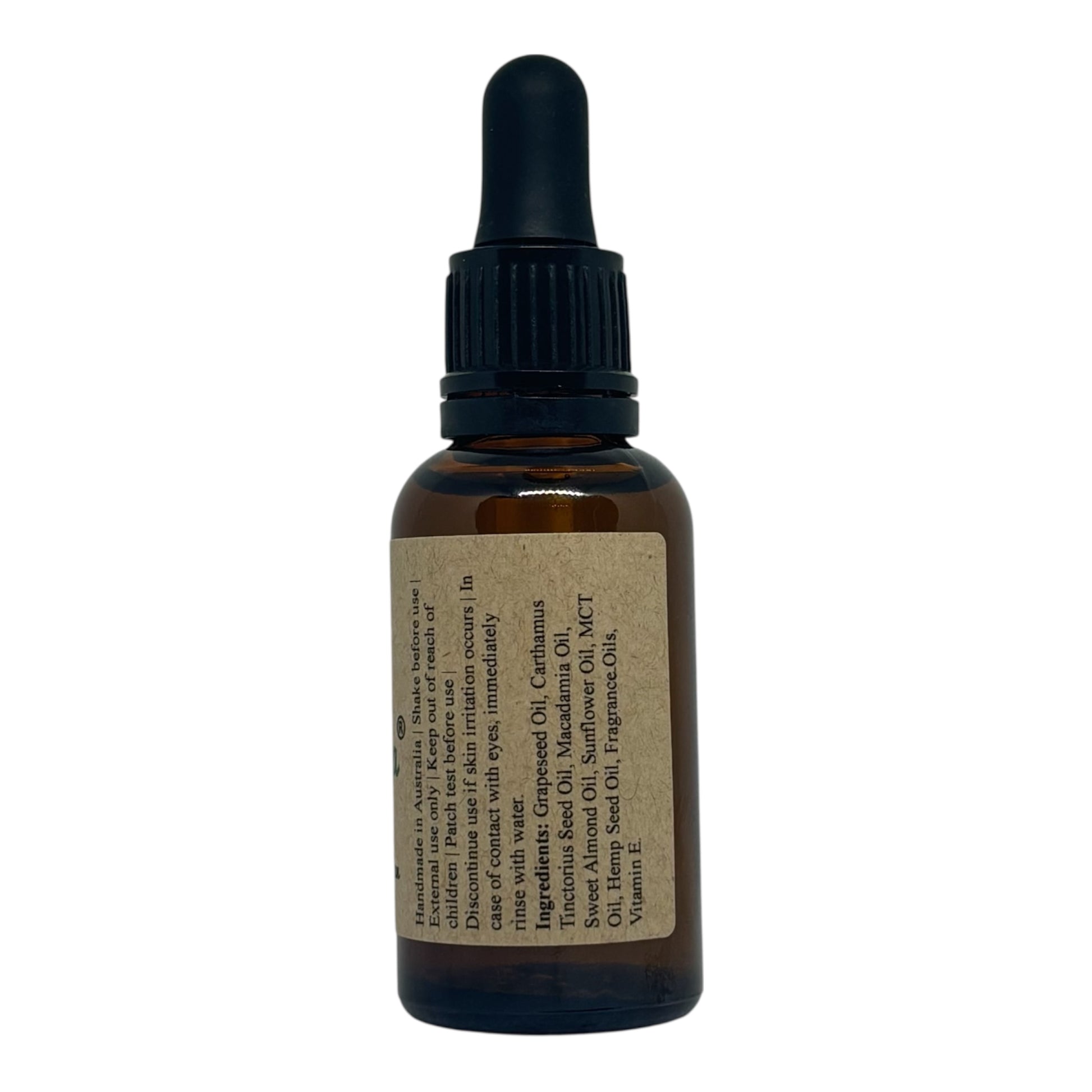 Formulated with a lightweight, non-greasy base of Grapeseed Oil, Carthamus Tinctorius, Macadamia Oil, Sweet Almond Oil, Sunflower Oil, Coconut MCT Oil and Hemp Seed Oil. This beard oil deeply hydrates your beard while soothing the skin underneath. Expect a softer, healthier beard with a smooth finish and zero residue.
